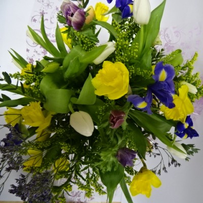 Let our florists bring some springtime cheer to someone special. They will design a pretty seasonal handtied bouquet using our selection of mixed spring flowers . Your flowers will be arranged in a vase and gift wrapped in complimentary cellophane with a bow. Size illustrated is small option.